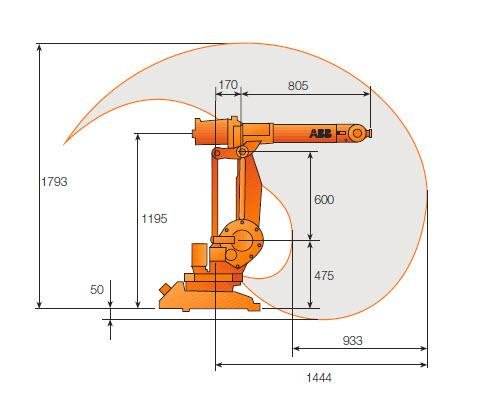 該機(jī)器人工作范圍大、到達(dá)距離長 (最長 1.44 m)。承重能力為5 kg,上臂可承受18 kg的附加載荷。高速 -- 較短的工作周期